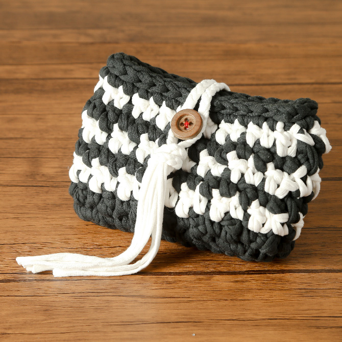 インスタグラムなどでも流行となったオランダ生まれの編糸「ズパゲッティ」で編んでいます