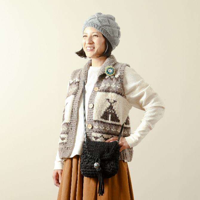 アルパカの油抜き半分の糸でしっかり編み上げてアウトドアにも暖かく最適なベスト