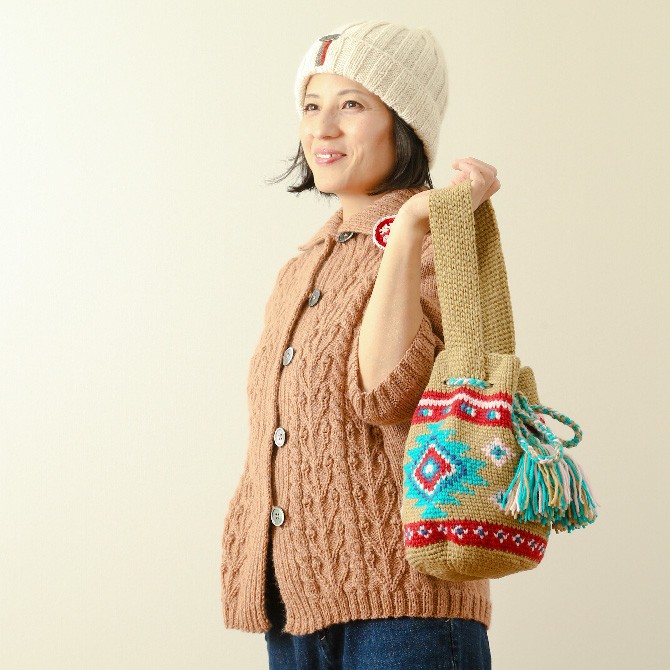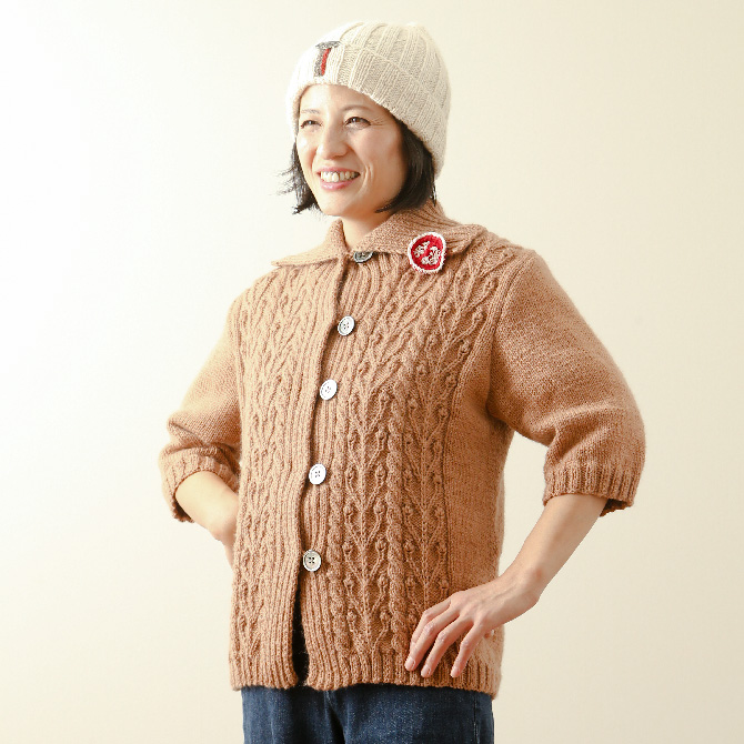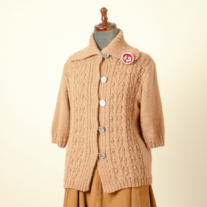 > 手編みカーディガン七分袖